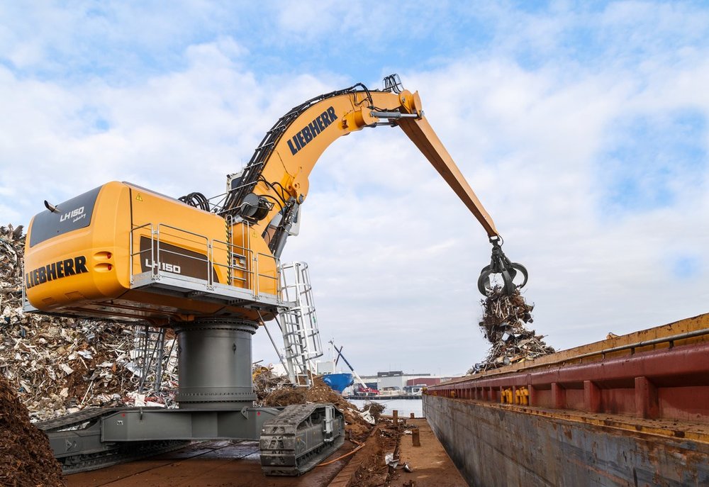 Un géant à Plochingen : première machine de manutention Liebherr LH 150 avec moteur électrique dans un port fluvial.